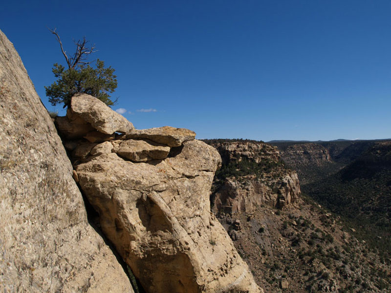 I took this heading back up from Balcony House. Somehow this lone stubborn juniper(?) tree managed to take root amonst the rocks. I was quite struck with the contrast of it against the sheer cliff faces and morning sky.