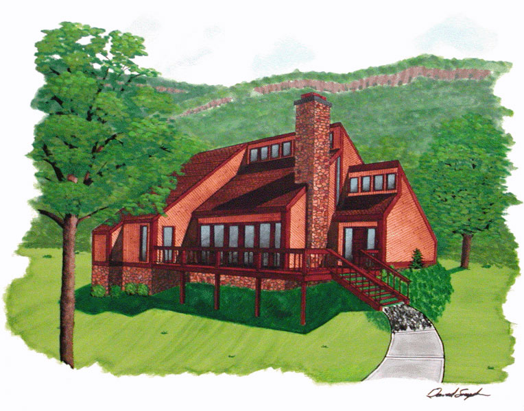 The ink version of the house was made shortly after the color one. We only had a day or so to complete this. I sat down and polished it off in one five hour sitting.The house was traced on Mylar. The landscape was drawn freehand.