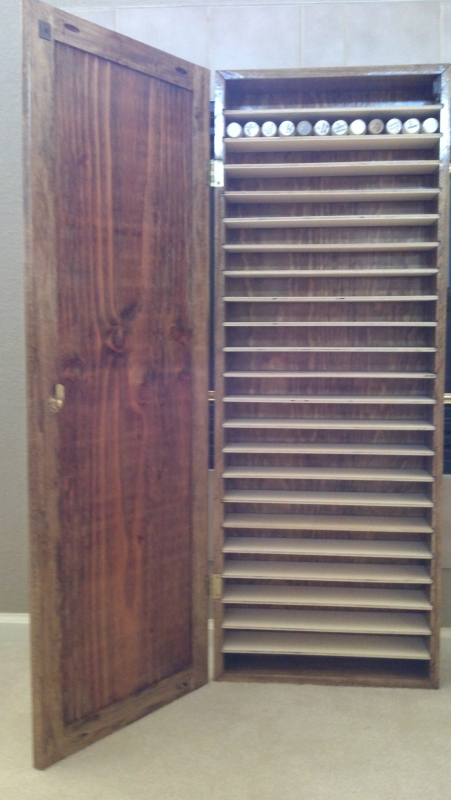 My wife enjoys Tole painting as a hobby. One thing about this hobby is it has a ton of different paint colors.I wanted a design that could hold a very high number of bottles, yet could be flexible in case we either wanted to change the storage position of the bottles or simply wanted to replace a shelf. To accomplish this, all shelving is simply slotted in and can easily be pulled out.